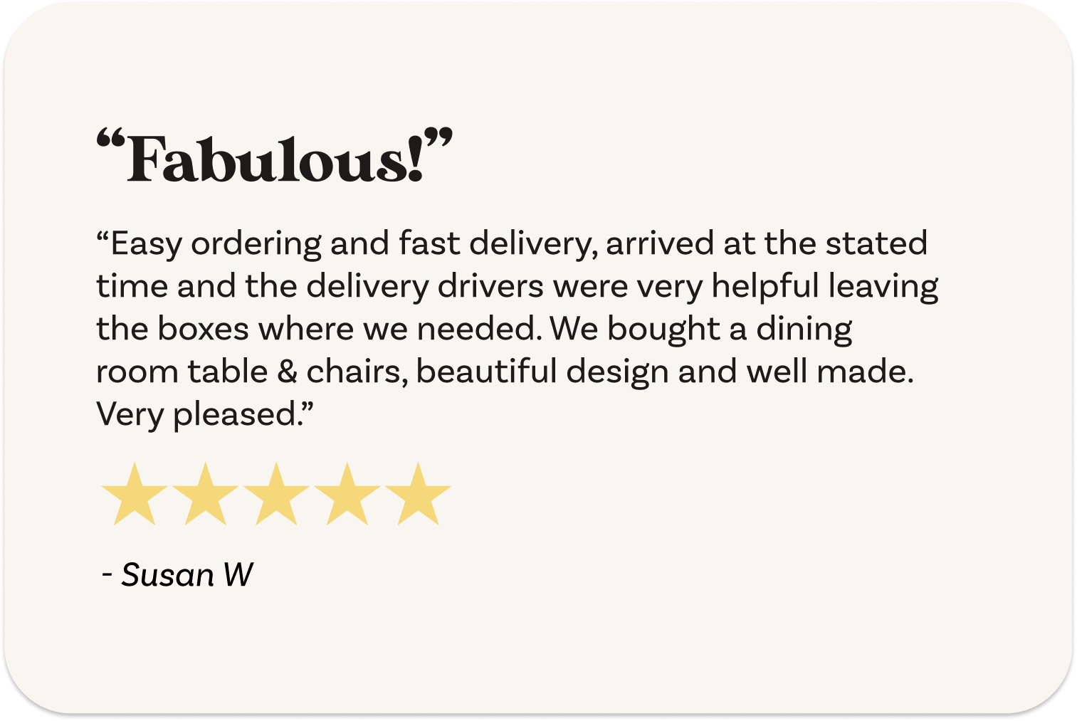 We believe furniture should be an expression of who you are at home; that great design should be timeless, effortless, and built to last; and that you shouldn’t have to wait for a piece you love.
