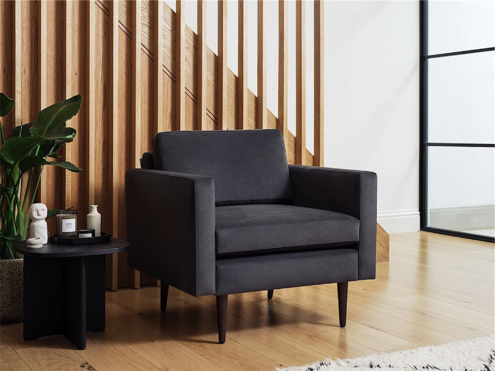 Armchairs can often look a tad tired, but no more. We have designed a collection of impressive modern black armchairs that use the softer shade of charcoal, a more versatile and contemporary black.