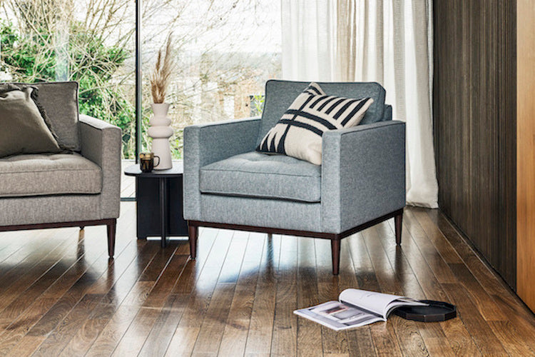 Accent chairs will work in the same colour as your sofa if that’s your preference. However, by choosing an accent chair in a different colour, you’ll bring more interest to the space. Visually, accent chairs look best when they’re a different colour to your main sofa. Read about mix and matching sofas and armchairs here.