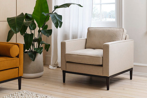 Create a calm living room with a cream armchair or accent chair. Discover armchair styles for every space in this warm, neutral, and versatile colour.