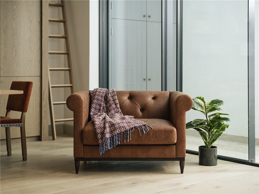 The faux leather armchairs are a rich chestnut – a traditional light brown that mirrors real leather perfectly. The armchairs come in six styles designed for any home, room or interior. From traditional to contemporary, modular to staple, timeless to mid-century. There is an armchair style in faux leather for everyone.