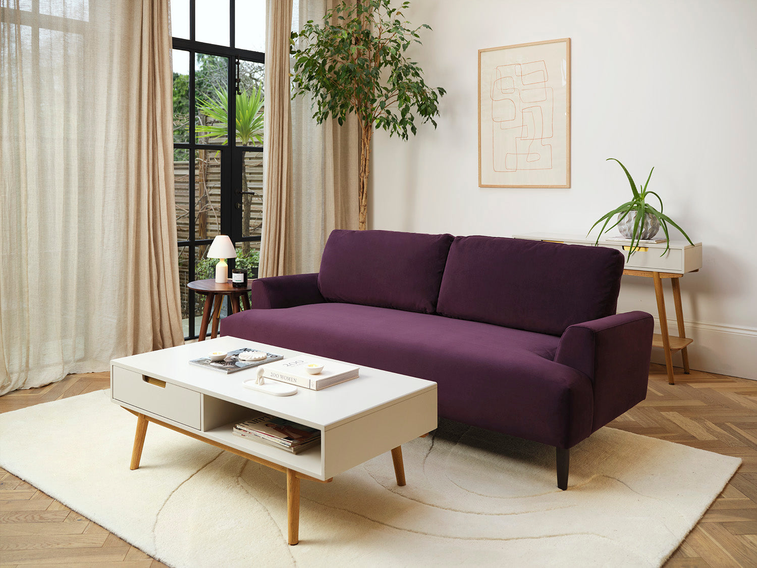 Our coffee table collection is available in walnut, oak, blue, or grey, so there’s a colour for any living room. A nod to mid-century design, the modern living room furniture items are the perfect statement for your living room.