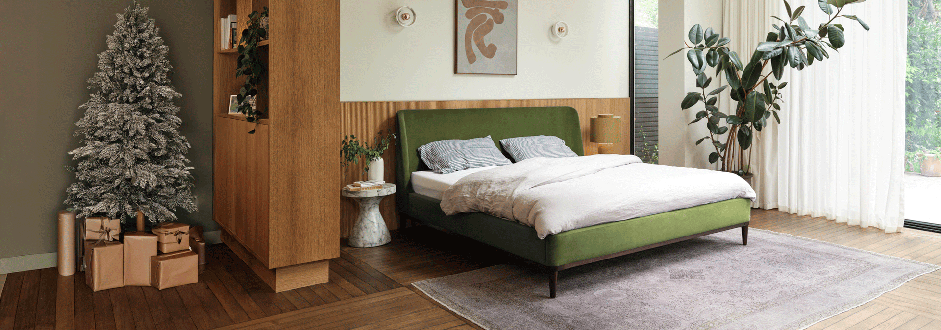 A UK Super King mattress is 5ft wide by 6ft 6 long (180cm by 200cm), so the bed will be slightly bigger. To work out if it will fit in your room, get your tape measure out and measure to the skirting board, not to each wall. Most bedside tables are around 50cm wide, so we recommend ensuring a 70cm gap on each side of the bed to avoid a tight squeeze.