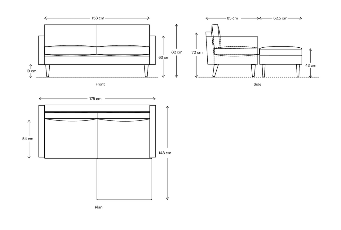 - Depth with chaise : 148cm