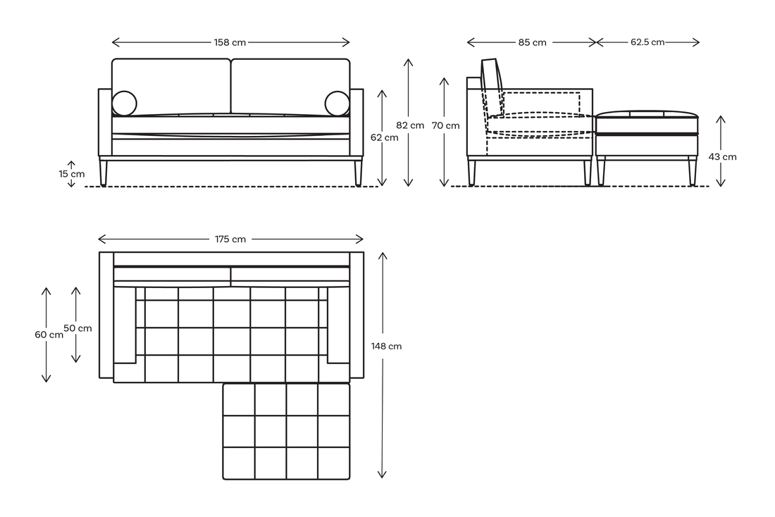 - Depth with chaise : 148cm