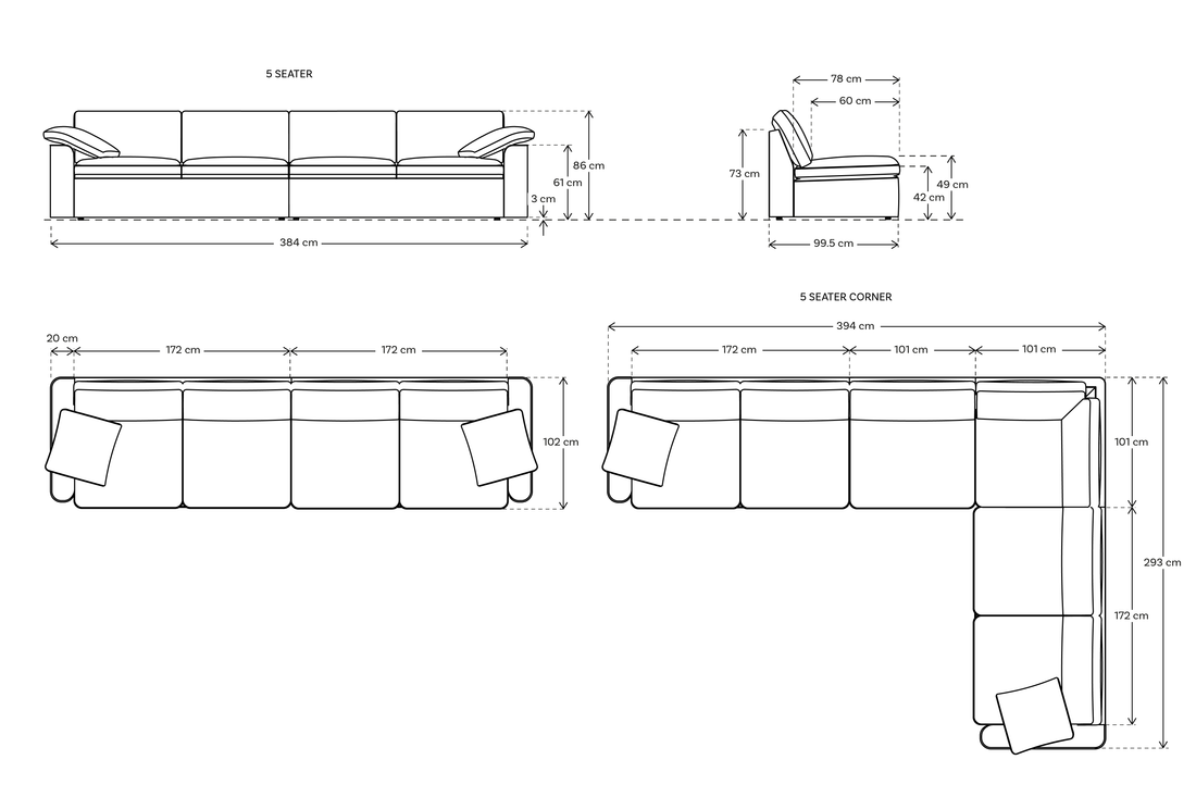 - Feather and hollow fibre cushions for a comfortable seating experience.