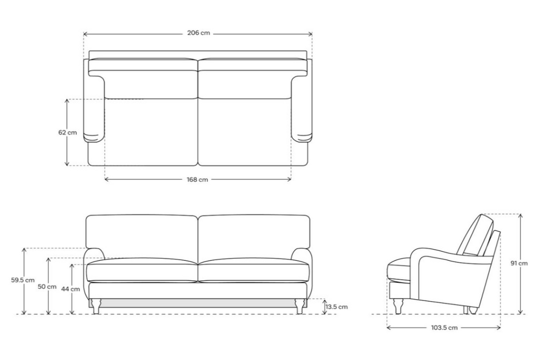 Heritage-inspired with a modern twist, this sofa blends timeless design with everyday comfort. Featuring pleated arms, piped-edge cushions, and turned wooden legs for that elegant, lived-in look, it’s finished with a deep, sloped seat and high back that’s made for serious relaxing. It’s tool-free to assemble, built with discreet support legs and floor-safe glides, making it as practical as it is good-looking.
